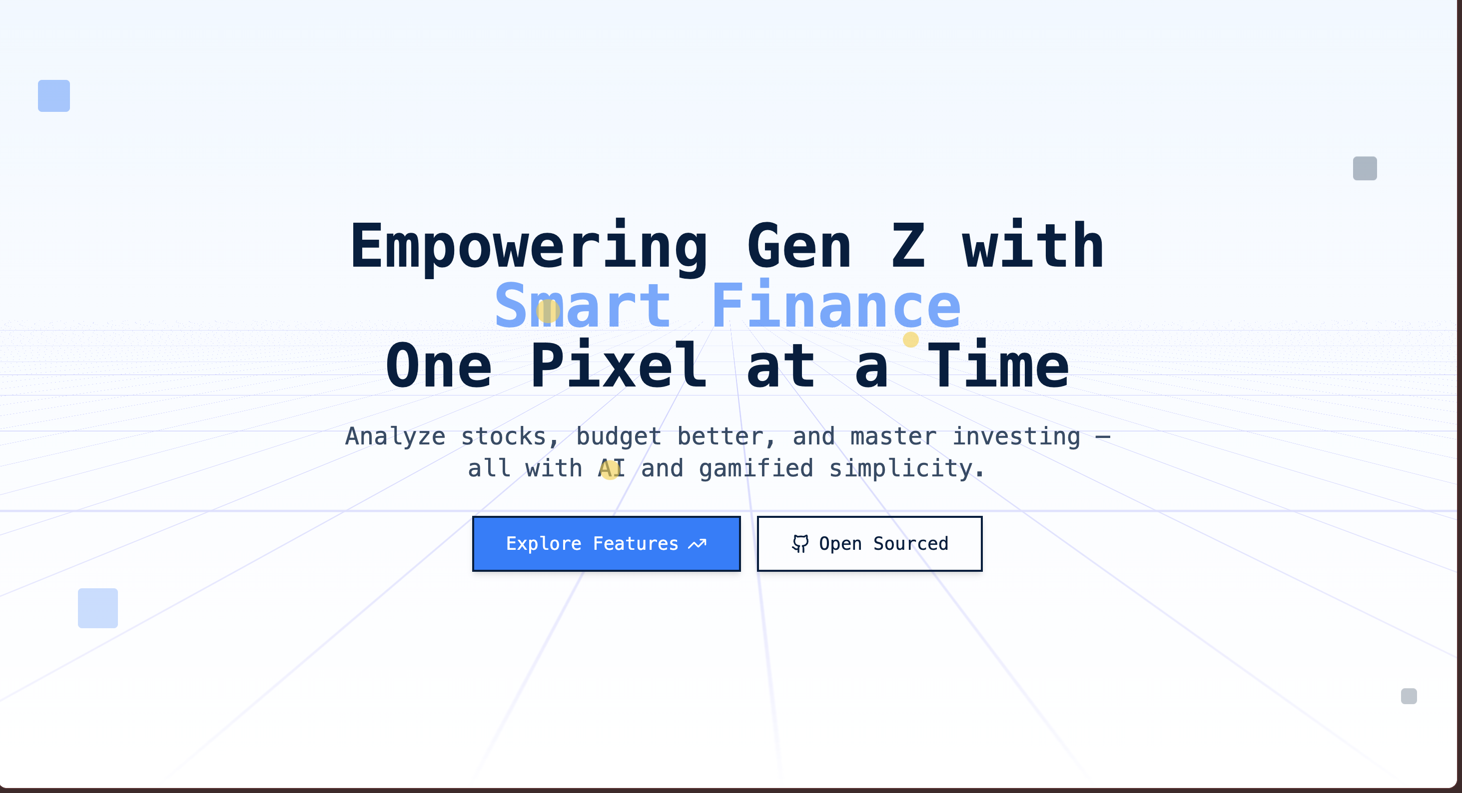 A News Terminal aggregates stock- and crypto-specific updates in real time, while the Budget Tracker manages expenses, categories, and AI-generated summaries. Gamified challenges (goals, badges, XP, leveling) encourage better habits. The retro pixel-art UI is responsive, mobile-ready, and smooth with micro-interactions.